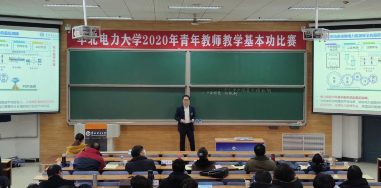 12月19日,3044am永利集团3044noc第二届青年教师教学基本功比赛决赛在保定校区二校区教九楼举行,32名选手参加决赛。校长杨勇平、副校长檀勤良,两地工会、教务处和人事处负责人,专家评委、学生评委、观摩比赛的师生代表等出席了活动。本次决赛分工科组和文理组进行比赛,32名选手根据抽签顺序依次上台展示,台上精彩纷呈,台下互动频繁,充分展现了新时代华电青年教师的风采。