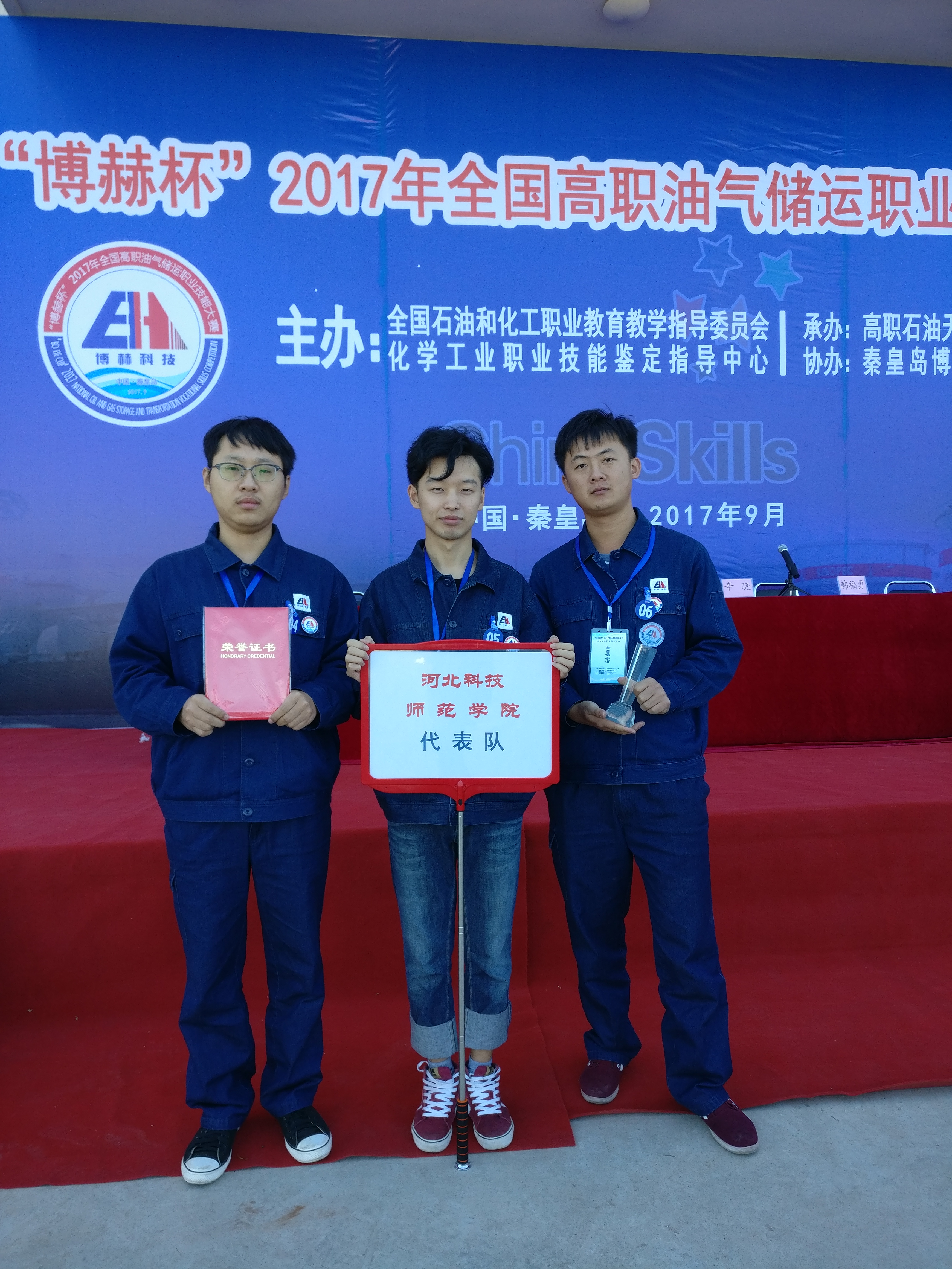 2017年9月28日,由全国石油和化工职业教育教学指导委员会、化学工业职业技能鉴定指导中心主办的第二届全国高职油气储运职业技能大赛在秦皇岛博赫科技园圆满落下帷幕。共有来自全国的12所院校参加比赛。best365官网best365英国在线体育官网的赵琰、段志青、刘璐老师指导的学生参赛队伍在比赛中荣获三等奖,段志青老师获得“优秀指导教师”荣誉称号。