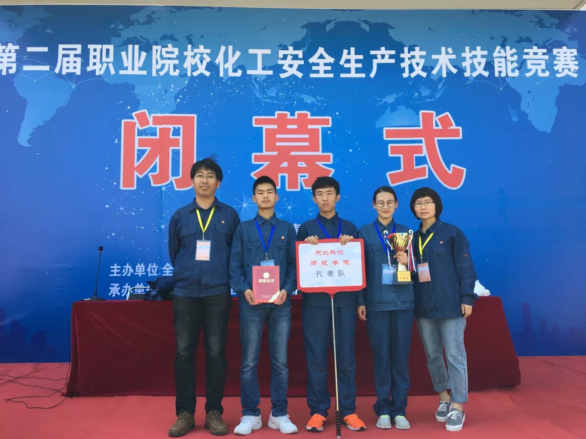 5月24日,由全国安全职业教育教学指导委员会、中国化学品安全协会主办,全国安全职业教育教学指导委员会化工安全专业分委员会承办,华北科技学院、秦皇岛博赫科技开发有限公司协办的2018年全国职业院校化工安全生产技术技能竞赛在秦皇岛博赫科技园落下帷幕。大赛中,由best365英国在线体育官网15级应化专业王亚玲,以及16级应化、化工专业唐明璐和祁潇组成的best365英国在线体育官网代表队经过奋力拼搏,从45支代表队中脱颖而出,取得了团体三等奖的好成绩。指导教师牛奎和刘璐老师荣获“优秀指导教师”的荣誉称号。