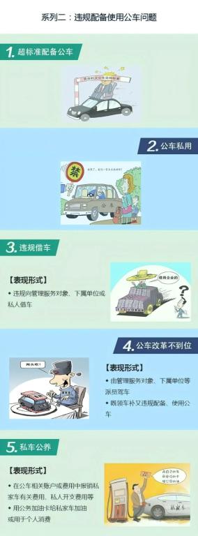 6.其他(包括6种表现:违规配备和使用公车、楼堂馆所问题、提供或接受超标准接待、组织或参加用公款支付的高消费娱乐健身等活动、接受或提供可能影响公正执行公务的健身娱乐等活动、违规出入私人会所、领导干部住房违规)。