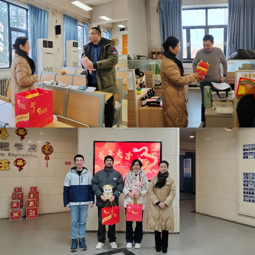 今年寒假学院共有10名学生选择留校过年,多为毕业生和博士生。卜春梅先后走访了主A与教五楼的研究生实验室,并与留校本科生见面交流,悉心询问他们的毕设进展、科研安排与就业情况。勉励他们保持学习热情,合理规划时间,多多关心父母亲人,叮嘱他们牢固树立安全意识,严格遵守学校规定,遇到困难和问题要第一时间联系学院。佳节将至,卜春梅为留校学生送上学院精心准备的慰问品,祝愿大家在平安喜乐、岁岁欢愉中迎接甲辰龙年的到来。