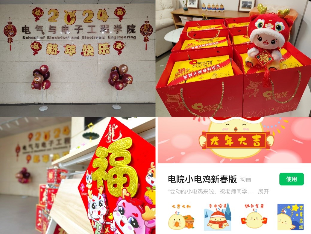 近日,学院还组织开展了形式多样的迎新春活动,在主A一楼大厅贴福字、发糖果,推出“小电鸡”新春版表情包,在线上发起新春祝福语征集等活动,不断丰富留校学生的文化生活,让他们感受到更浓“年”的味道与更多“家”的温暖。