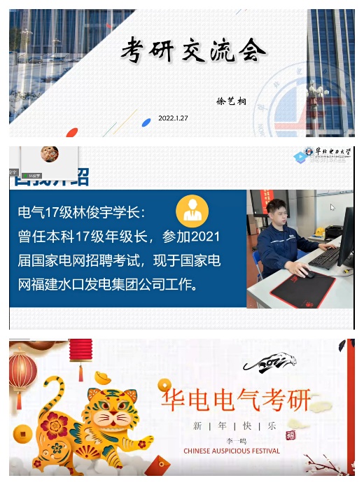 在电气工程及其自动化与智能电网信息工程专业专场家长会中,年级邀请到三位优秀的毕业生为家长和同学们分享相关经验,林俊宇同学介绍了毕业生就业情况及备考国网的策略方法,永利官网在读研究生徐艺桐和李一鸣详细分享了考研的相关流程与经验。