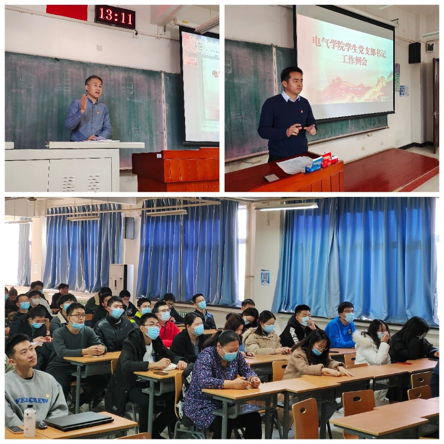 张宝良作学生党建工作指导。张宝良表示,学生党支部书记应充分发挥头雁效应,带头强化理论学习,带头增强工作本领,带头抓好支部建设,以定期参加例会为契机,带着思考来,带着收获走,真正做到夯基础、拓思路、共提升。他结合学院党员发展工作中存在的问题,结合自己与学生党支部书记定期交流情况,提出三点工作要求。一是要进一步规范党员发展程序,确保每一名新发展党员的质量;二是要高标准用好“一规一册一表一网”,打造学生党支部标准化规范化建设“升级版”;三是要夯实理论根基,做到理论学习常态化、系统化,使理论知识真正入脑入心、见行见效。