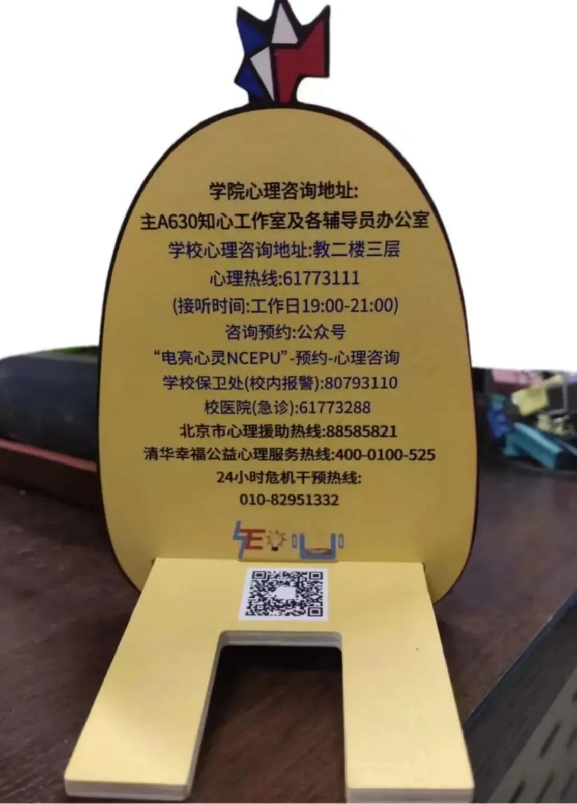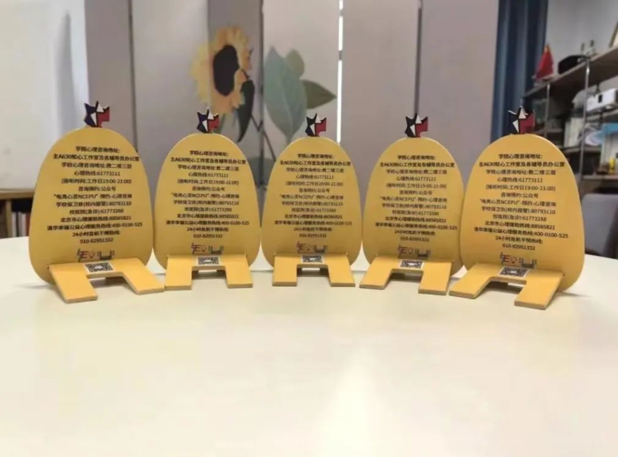手机支架正面印制有“3044am永利集团3044noc”“德才兼备、知行唯实”的字样,这不仅是对学院精神的传承,也是对师生们的⼀种鞭策和鼓励。通过这种方式,希望师生们能够时刻铭记学院的教育理念,努力成为堪当民族复兴大任的时代新人。⽀架背面印制有心理咨询室地址方式等详细信息,这是对师生们心理健康的⼀种关怀和提醒。在面对学习、生活压力时,希望⼤家能够及时寻求⼼理帮助,保持⾝心健康。小电鸡手机支架采用木质环保材料制作,既符合环保理念,也体现了学院对可持续发展的追求。我们希望能够引导师生们关注环境保护,共同为可持续发展贡献力量。支架特别定制了“吃瓜鸡”、“读书鸡”、“可爱鸡”、“博学鸡”和“干饭鸡”五种款式,让大家的手机支架充满个性!无论是在图书馆、教室还是宿舍,小电鸡都能为大家提供方便。希望它可以守护大家的健康心态,陪伴大家度过每一个快乐时刻!