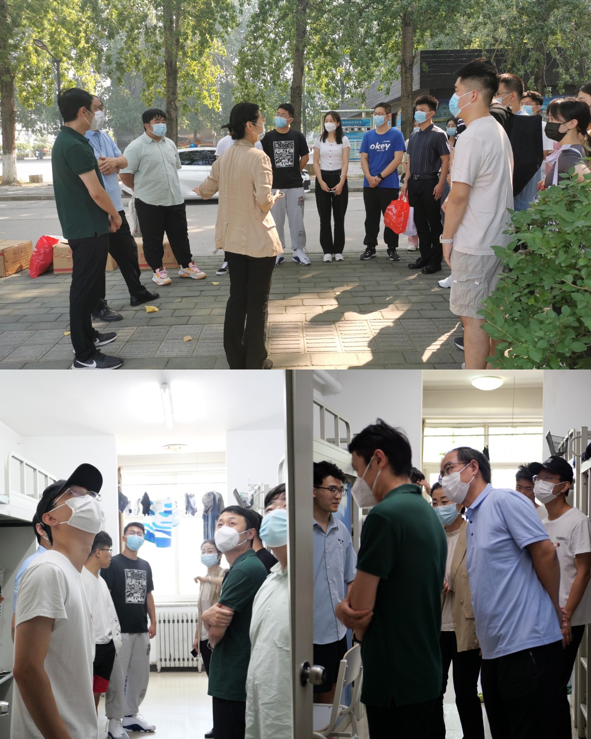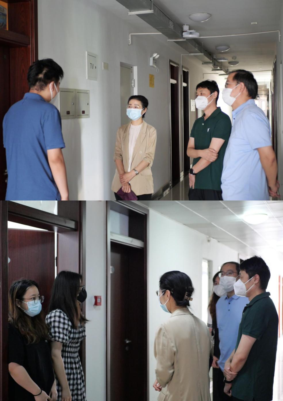 学院领导还走入了沙河院区新生宿舍,与同学们深入交流。沙河院区共有研究生宿舍2栋,我院男女生大都分别居住在两栋楼的5、6层。卜春梅与同学们亲切地交谈,询问同学们从哪来,在哪位导师门下,勉励同学们要尽快完成角色转换,适应新环境、融入新集体。同学们也向老师们问好,并且表达了自己的生活诉求,齐磊为他们提出了一些解决建议。