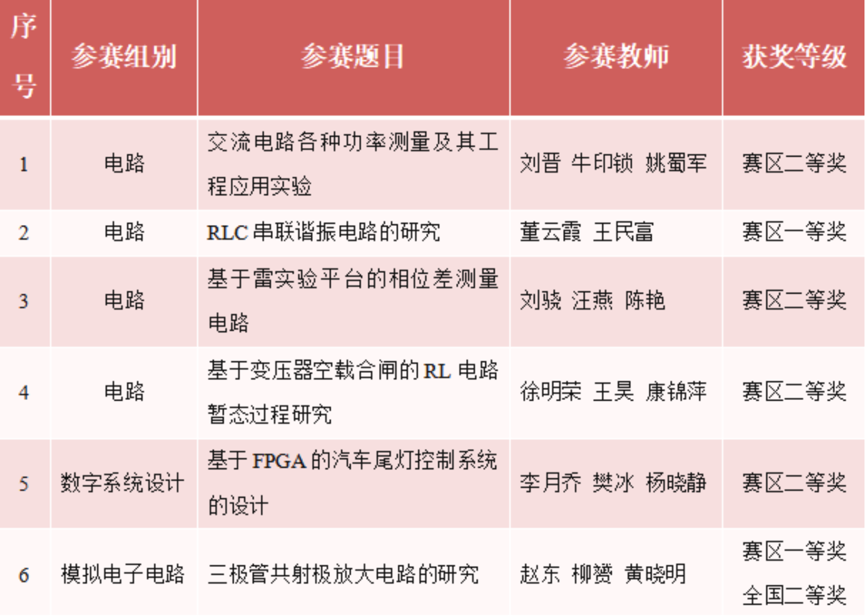 具体参赛和获奖情况如下表所示: