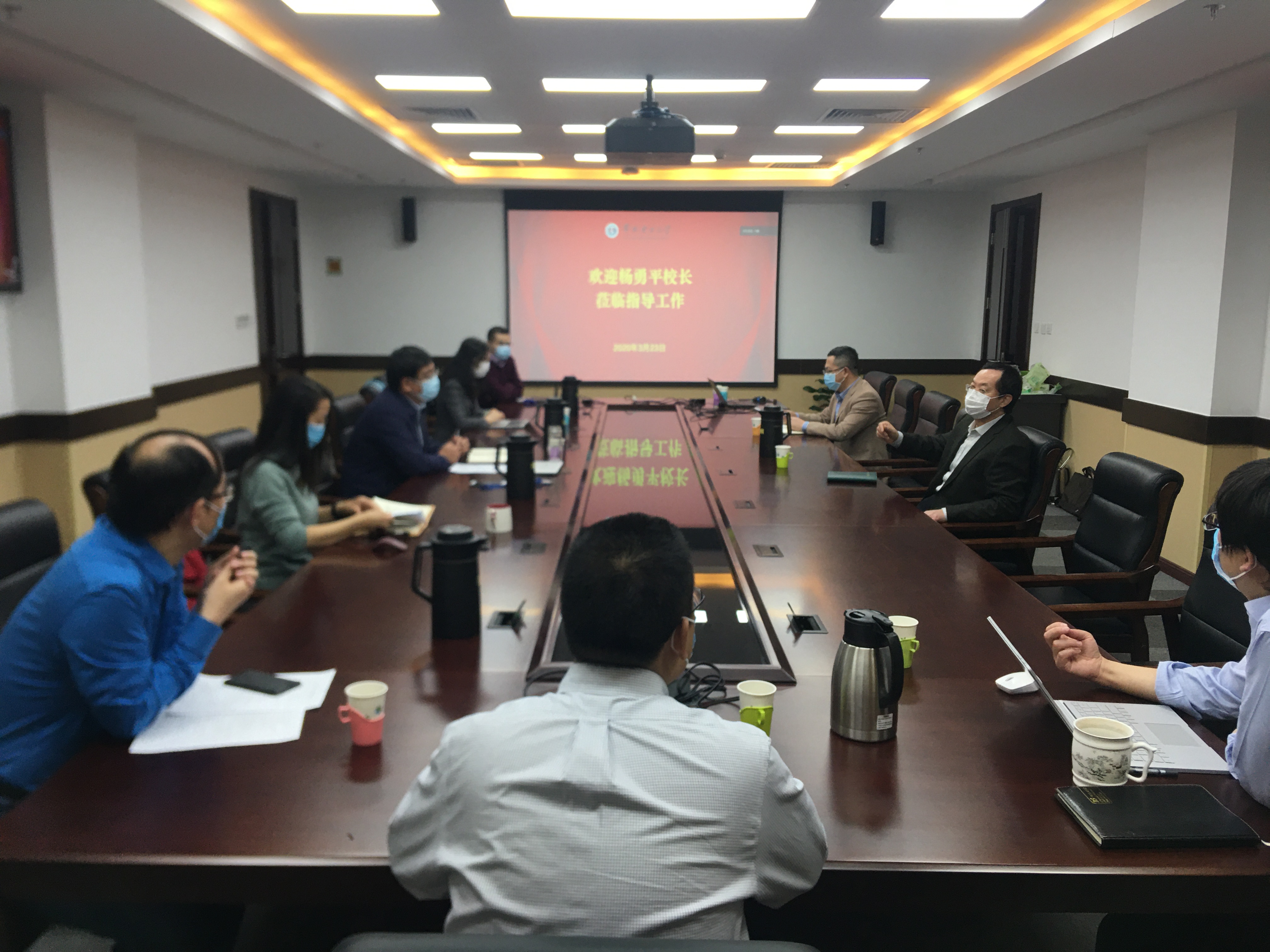杨勇平听完汇报后,肯定了电气学院在2019年各项工作中取得的成绩和学院领导班子的工作,指出了工作开展过程中存在的问题和不足,并对学院今后的发展建设提出了明确的要求。他强调,疫情防控仍然是工作的重中之重,目前全国疫情防控形势持续向好,但国外疫情蔓延,境外输入性病例明显增多,成为严峻挑战。学院要保持高度重视,不能松懈,继续贯彻国家、学校各项部署要求,研判形势,提前谋划,积极应变,扎实做好毕业生就业、本科生毕业设计以及研究生复试等工作,另外,要做好境外师生防疫的管理与服务,持续关注境外师生的身体健康和思想动态,同心全力打赢疫情防控阻击战。