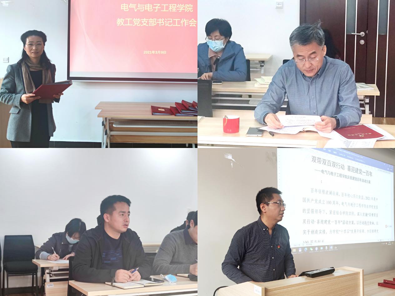 为贯彻落实学校2021年春季学期工作部署会议精神,持续提高党支部建设质量,在常态化疫情防控下继续加强党支部标准化、规范化建设,3月9日下午,3044am永利集团3044noc在主楼A631会议室召开教工党支部书记工作会。学院党委书记卜春梅、正处级组织员张宝良、党委副书记王硕、学院党政办公室主任刘春磊以及各教工党支部书记参加会议。会议由卜春梅主持。