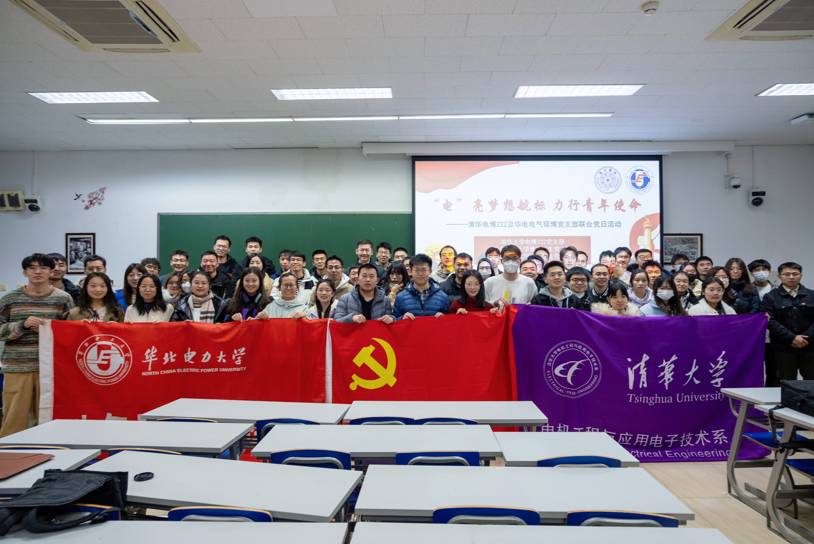 近日,3044am永利集团3044noc多个研究生党支部与清华大学电机系博士生党支部,以纪念“一二·九”运动88周年为契机,联合开展了“‘电’亮梦想航标,力行青年使命”主题党日活动,博电2376、2377、2378、2379党支部和研电2208、2303、2304党支部70余名党员骨干参加。