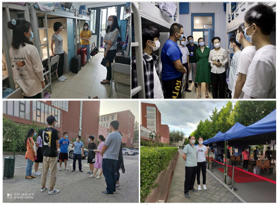 深入宿舍,慰问暖心。学生返校期间,大学副校长、学院院长毕天姝,学院党委书记卜春梅深入返校报到点、学生宿舍等走访慰问。毕天姝走进10号楼和15号楼学生宿舍与同学亲切交谈,她代表学院全体教师欢迎同学们在阔别八个多月后回到学校,勉励他们尽快调整状态,全力投入到新学期的学习与生活中。“在家上网课感受如何?是否期待教室的面对面授课?”“寝室潮不潮?哪里可以晒被子?”每到一处,毕天姝都要仔细察看同学们的学习居住环境,关切询问同学们的学习生活情况。学院党委书记卜春梅亲赴现场指导学生返校准备工作,卜春梅说:“要保障返校学生的安全生活,同时学生进入校门的时刻便是返校教育发力的时刻。”卜春梅与辅导员一同前往宿舍与返校同学亲切互动,了解学生返校后的适应情况。学院副院长齐磊、徐衍会,党委副书记王硕走访看望返校研究生、本科生,关心了解学生返校后的生活、学习等状况,关心关切同学们的身心健康。同学们纷纷对学院领导的关心表示感谢,也表示一定会遵守相关规定,做好个人防护。