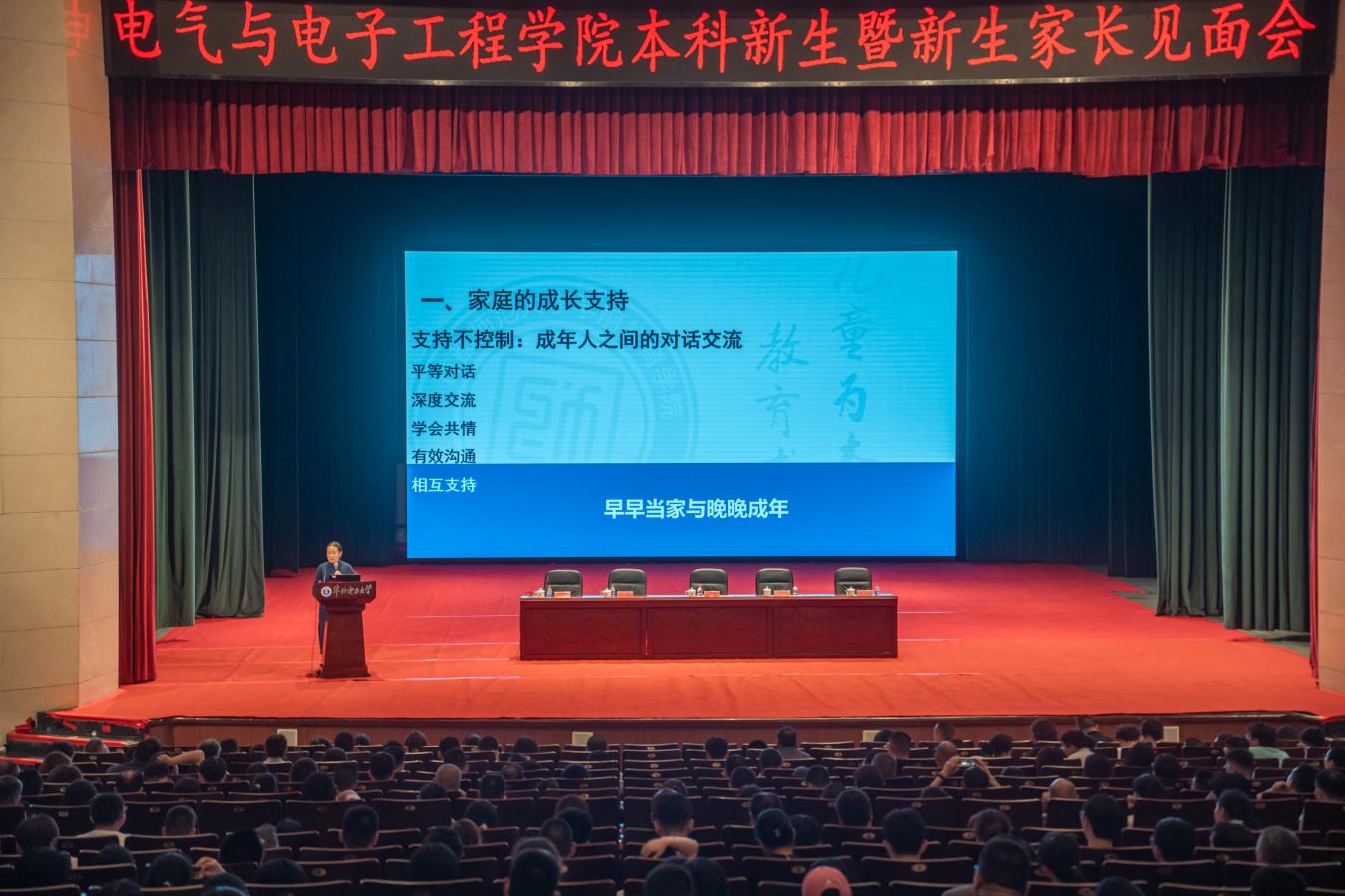学院副院长徐衍会详细介绍本科教学培养情况,对本科各项重要时间节点和重要政策进行解读,鼓励新生同学勤于专业学习,培养创新思维,为未来发展做好规划、打牢基础,对新生提出“德智体美劳全面发展,为祖国电力事业健康奋斗60年”的美好期盼。学院党委副书记王栋梁从新生入学成绩、毕业生就业率、学生日常管理等三个方面进行数据分享,并基于此对新生提出三点建议,一要做好自主学习、社交生活的准备;二要做好探求更高目标和追求的准备;三要做好应对挫折、乘风破浪的准备。叮嘱新生同学要深刻认识自我、提升自我、勤于实践,在大学这个价值观塑造、个性成长和智慧探索的关键期,实现自我成长成才的完美蜕变。学院副院长(主持工作)齐磊从学院院史、学科建设、师资队伍、科研平台、人才培养等方面全面介绍学院情况,结合国家人才需求,勉励学生要打牢专业基础,锻炼工作能力,全面成长成才,用不懈奋斗为大学四年书写满意的答卷。学院党委书记卜春梅在总结讲话中用殷切、平和的话语对新生同学寄予三点期望,一是新起点要树立新目标,争做坚定理想、知重负重的有志青年;二是用行动践行新目标,争做有毅力、有恒心的行动者,争做把握当下、力学笃行的有才青年;三是争做朝气蓬勃、主动应变的有为青年,勉励全体新生同学要在接下来的四年中留下无悔的奋斗足迹,书写精彩的崭新篇章。此次见面会的成功举办让新生及新生家长深度了解学院,有力增进了新生的归属感与融入感。