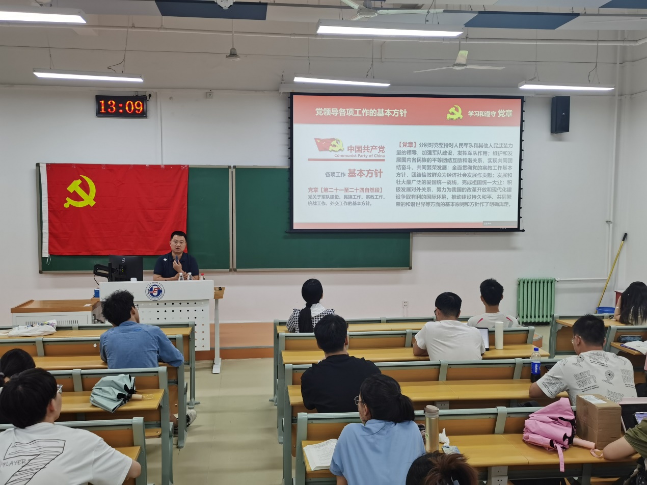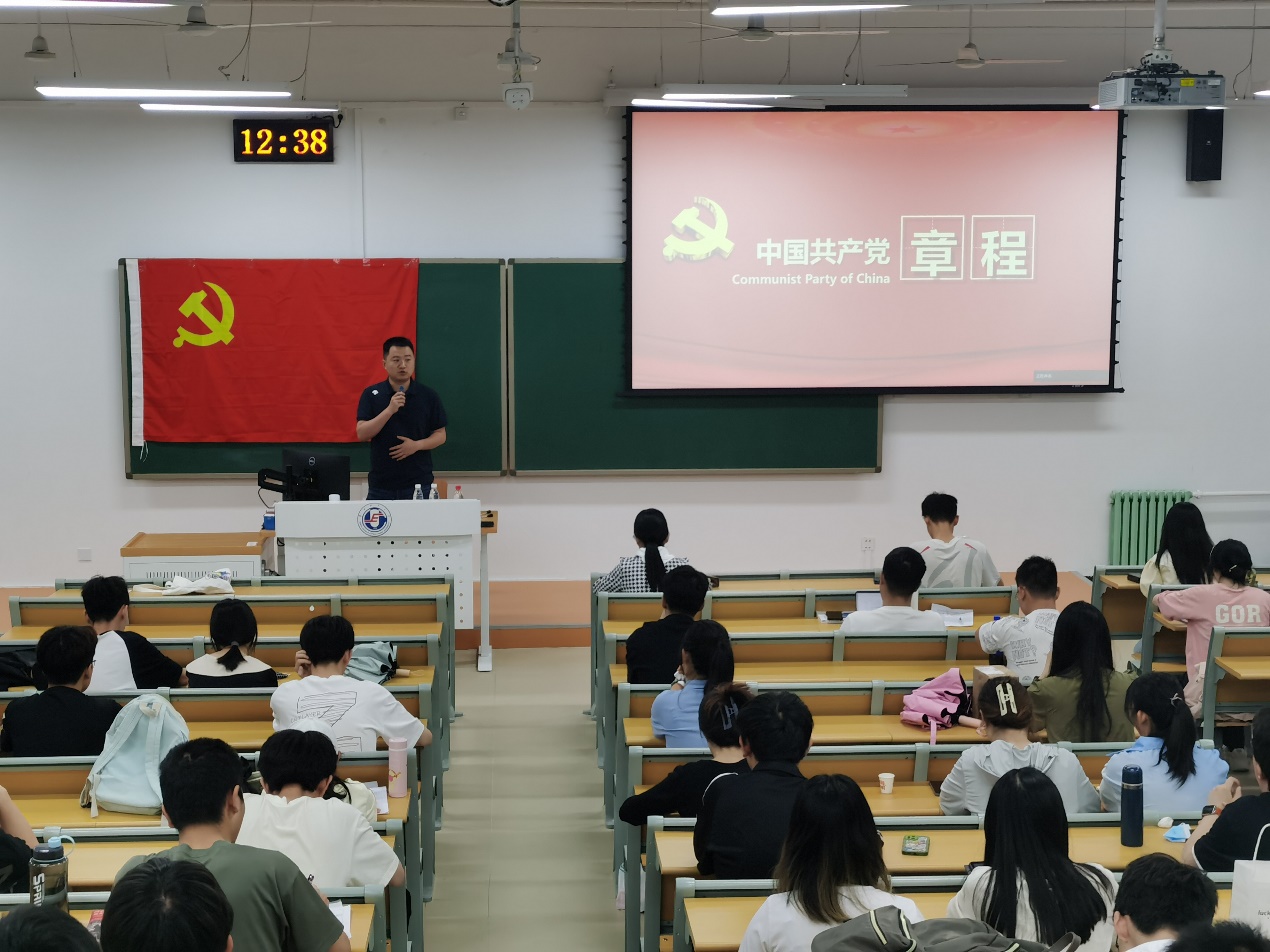 2024年5月15日中午,3044am永利集团3044noc第57期入党积极分子培训班第三次党课在主B101举行。学院党委副书记王栋梁为全体学员系统详细的解读了《中国共产党章程》。