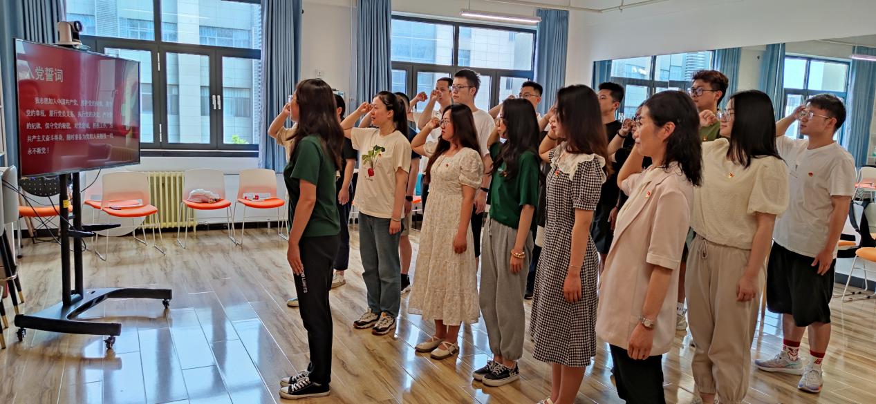 史东雁带领大家重温入党誓词。全体党员面对鲜红的党旗,举起右手,庄严宣誓,宣誓过程庄严凝重,声声震彻,全体毕业生党员代表重温了入党时所作的承诺,接受了一次生动的党性教育,纷纷表示要将誓言化作拳拳赤诚,让党员这个光辉身份永不褪色。