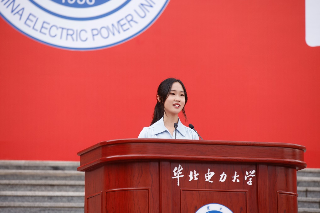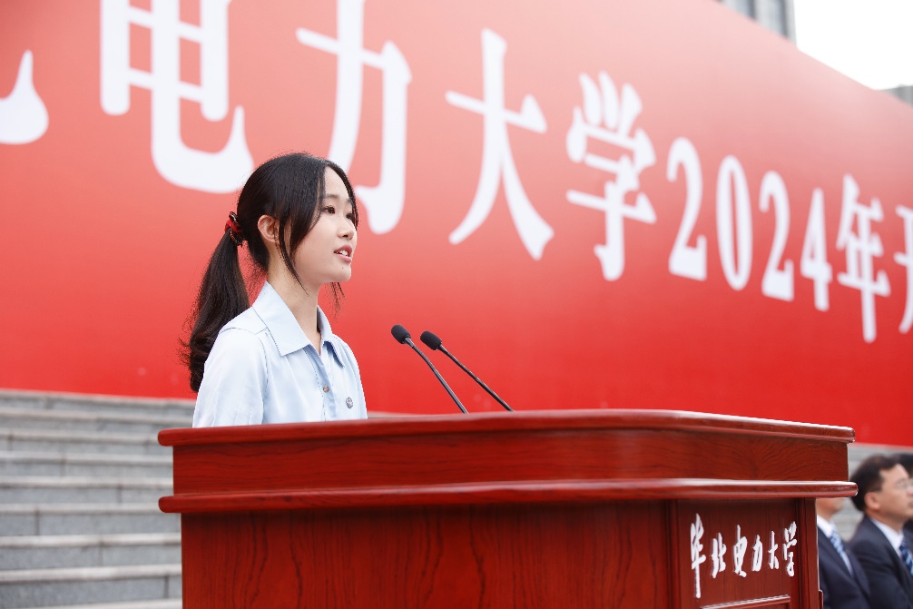 在发言中,孙逸萌勉励新生们在大学的时光中努力找寻自己人生的理想信念和目标,不畏困难,孜孜以求,做想做的事,成为想成为的人。她呼吁广大新生,不仅要做伟大时代的见证者,更要做参与者与推动者,勇于担当时代赋予的重任,把个人理想融入国家发展的伟大事业中,不负时代、不负母校、不负青春,为中华民族的伟大复兴贡献华电力量。