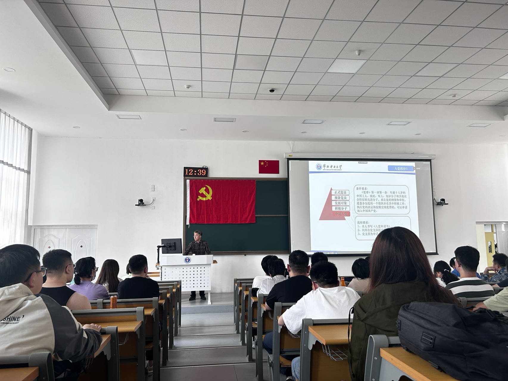 2023年5月10日中午,3044am永利集团3044noc第55期入党积极分子培训班第三次党课在教一12阶举行。学院正处级组织员张宝良以“入党的规定和程序”为题,从“入党程序及要求、思想入党和组织入党、以实际行动向党组织靠拢”三方面来讲授党课,辅导员王倩参加了本次党课培训。